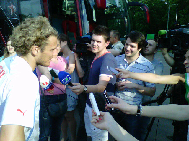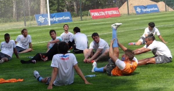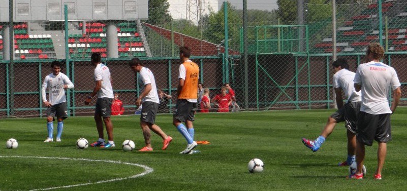 Fueron 18 los que entrenaron el lunes por la tarde y el martes en doble horario en instalaciones del club Lokomotiv, y el plantel de 21 se completó con la llegada de Edinson Cavani, Walter Gargano y Martín Cáceres, afectados a la actividad de sus clubes por la final de la Copa Italia el pasado domingo. Los dos hombres del Napoli y el defensor de la Juventus fueron los últimos en arribar.