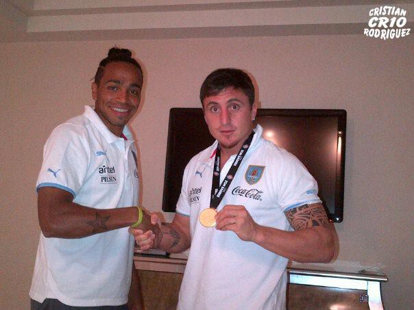 La nómina charrúa está compuesta por los arqueros Fernando Muslera (Galatasaray, Turquía) y Martín Silva (Olimpia, Paraguay), los defensores Diego Lugano (PSG, Francia), Diego Godín (Atlético Madrid, España), Sebastián Coates (Liverpool, Inglaterra), Martín Cáceres (Juventus, Italia) y Maximiliano Pereira (Benfica, Portugal, los volantes Álvaro González (Lazio, Italia), Egidio Arévalo Ríos (Xolos de Tijuana, México), Walter Gargano (Napoli, Italia), Diego Pérez (Bologna, Italia), Sebastián Eguren (Sporting Gijón, España), Álvaro Pereira (Porto, Portugal), Nicolás Lodeiro (Ajax, Holanda), Cristian Rodríguez (Porto, Portugal) y Gastón Ramírez (Bologna, Italia), y los delanteros Edinson Cavani (Napoli, Italia), Luis Suárez (Liverpool, Inglaterra), Diego Forlán (Inter, Italia), Abel Hernández (Palermo, Italia) y Sebastián Fernández (Málaga, España).