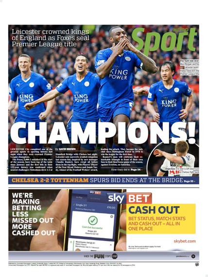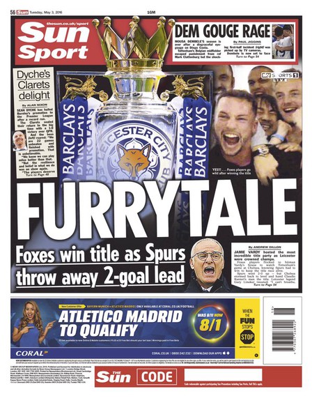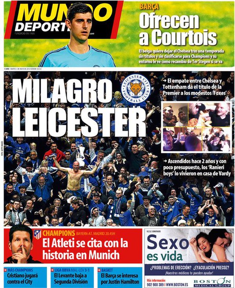 Medios del Reino Unido como la BBC y "The Daily Telegraph" llevan a sus portadas la hazaña de los "foxes", que tildan de "cuento de hadas", mientras que el diario "The Guardian" retrata este récord como "una de las victorias deportivas más inverosímiles de los últimos tiempos" y como "un triunfo que se pensaba que nunca iba a ocurrir".