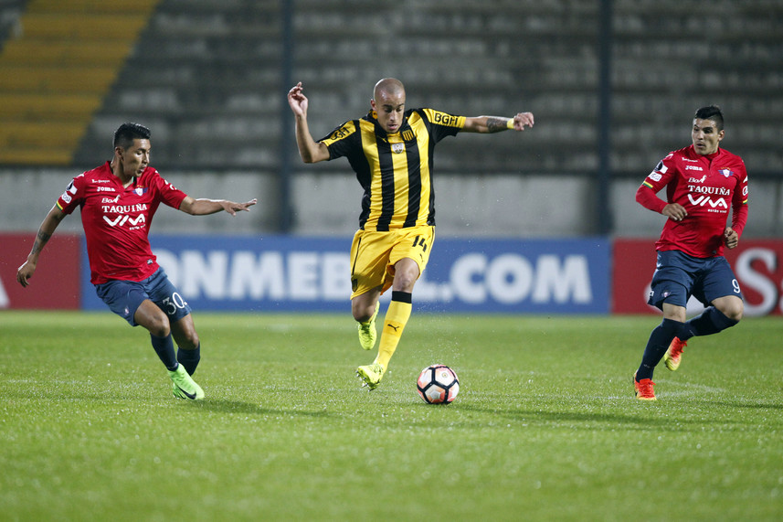 El partido comenzó con Peñarol intentando presionar en la salida del equipo boliviano, rival que en un principio volcó el fútbol por la derecha, aunque con poco desequilibrio.