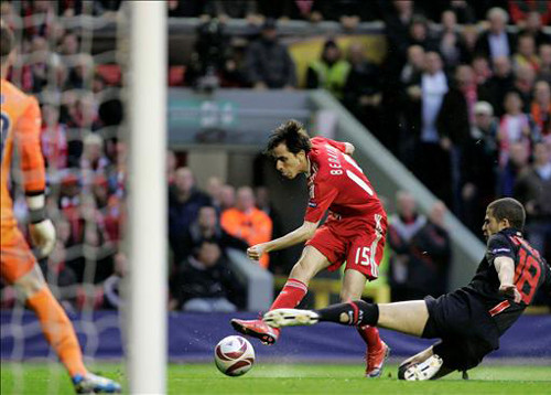 Goles: 43' Aquilani, 4'TS Benayoun (Liverpool); 10' TS Forlán (Atlético)