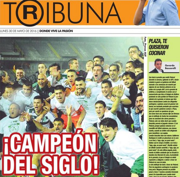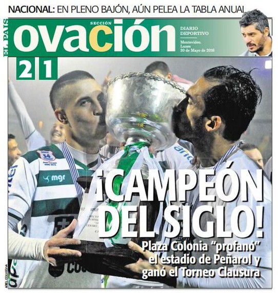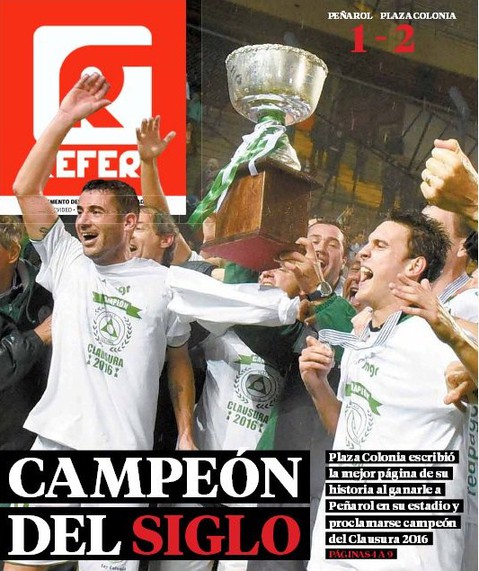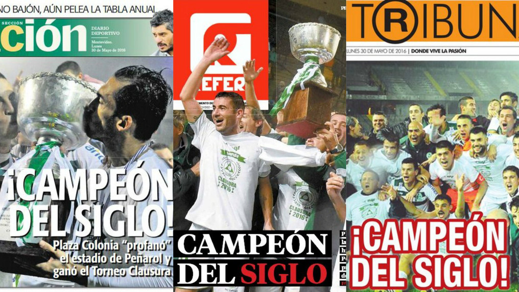 Lo curioso es que los tres suplementos deportivos de diarios de circulación nacional (La diaria no separa la información deportiva en un suplemento) optaron por titular de la misma exacta manera. Tanto Referí (de El Observador), Ovación (de El País) y Tribuna (de La República) titularon "¡Campeón del siglo!", en chiste alusivo al estadio de Peñarol, que vivió una primera vuelta olímpica que no esperaba. Los integrantes de Plaza Colonia podrán guardarse las tapas de los diarios como una curiosidad más de este campeonato inolvidable.
