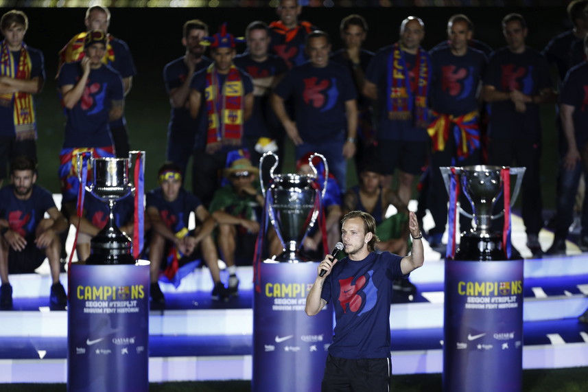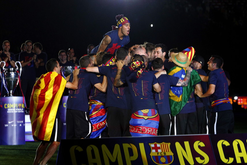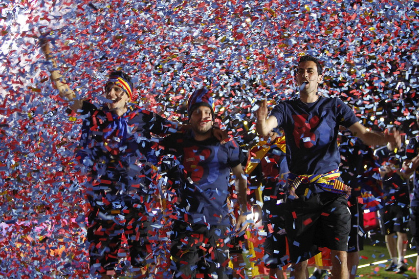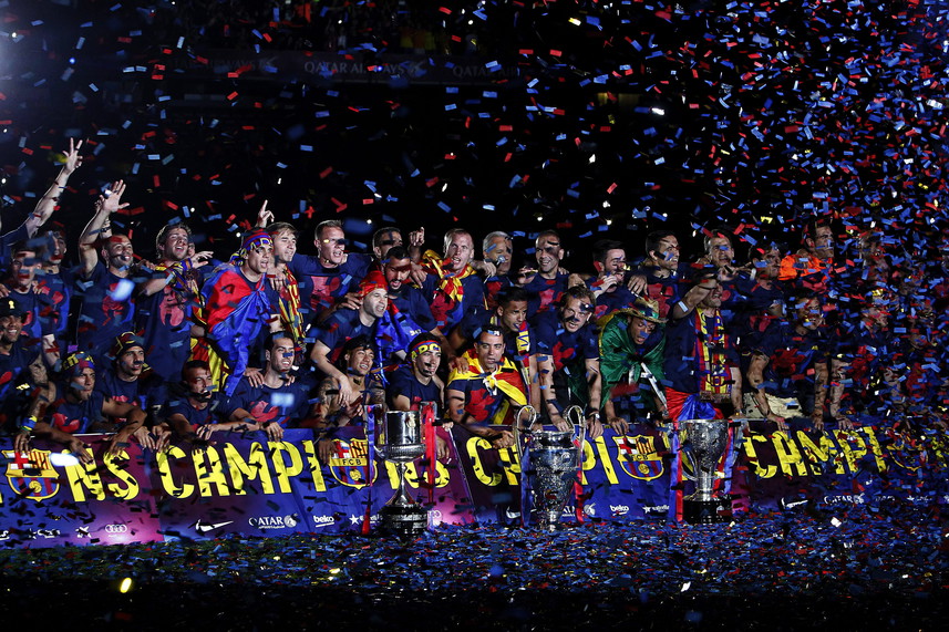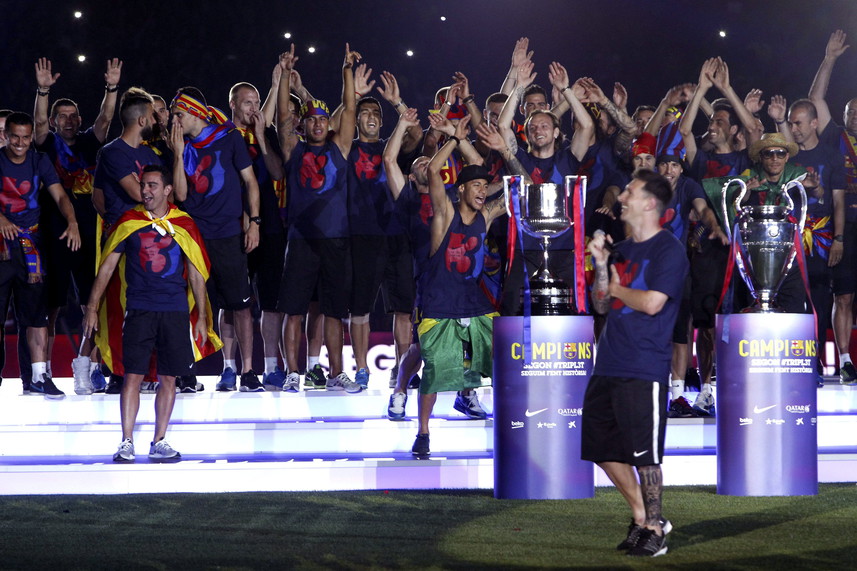 El Barcelona se consagró campeón de la triple corona (la Liga de España, la Copa del Rey y la Champions League) y lo festejó a lo grande. El plantel, que el sábado ganó el torneo continental, fue recibido por miles de personas en Barcelona, quienes los custodiaron hasta el Camp Nou, escenario blaugrana, donde los jugadores exhibieron los tres trofeos obtenidos.
