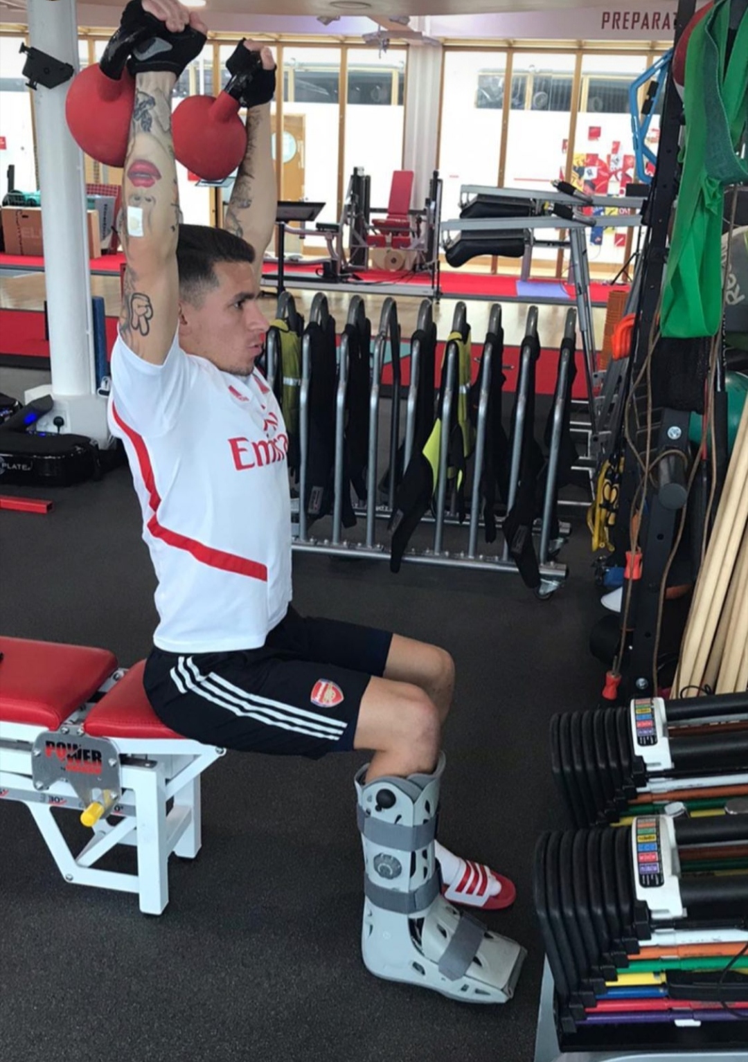 Mientras se espera por los resultados de los distintos exámenes a los que fue sometido, Torreira se ejercitó en el gimnasio del club y así lo hizo saber en sus redes sociales. En los videos se lo puede ver trabajando tren superior con una bota ortopédica en la zona lesionada.