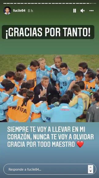 También hubo mensajes de ex dirigidos por el maestro en la Celeste como Álvaro Fernández, Sebastián Abreu, Álvaro Pereira o Cristhian Stuani, y más tarde la lista se engrosó con otros referentes del proceso como Diego Pérez, Egidio Arévalo Ríos, Cristian Rodríguez, Jorge Fucile, Nicolás Lodeiro, Mathias Corujo, Álvaro González o Vicente Sánchez.