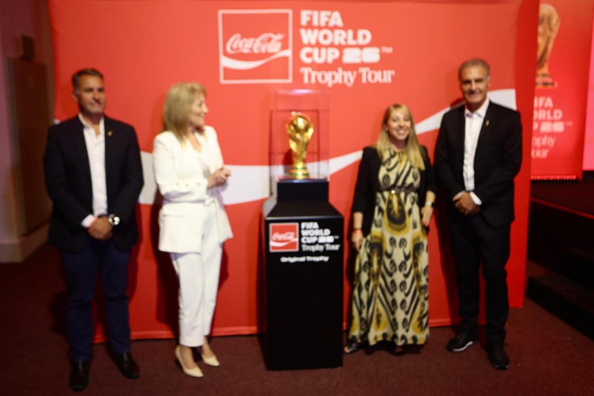 El trofeo oficial del Mundial 2026 fue exhibido este domingo en el Laboratorio Tecnológico del Uruguay (LATU) en Montevideo como parte del FIFA World Cup Trophy Tour, una gira mundial organizada por FIFA.