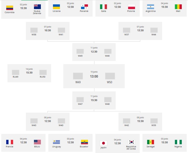 Con el cierre de la fase de grupos del Mundial sub-20 de Polonia quedaron definidas las llaves de octavos de final, donde Uruguay se enfrentará a Ecuador por meterse entre los cuatro mejores de la justa.