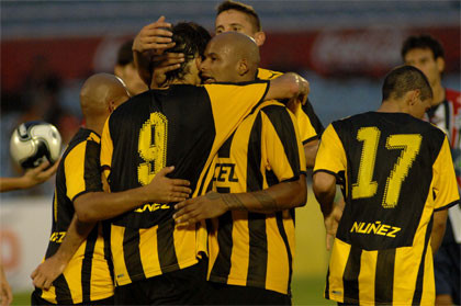 Apenas habían pasado once minutos del primer tiempo, cuando Ruben "pollo" Olivera anotó el primer gol "de cancha" para los aurinegros en la Copa Bimbo.