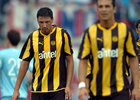 Duro es el camino![]() Guaraní le ganó 2-1 a Peñarol en Trinidad, por la Copa Antel. Luis De La Cruz hizo los dos goles para el equipo paraguayo que dirige Diego Alonso, que fue superior al Carbonero, para el que descontó Juan Manuel Olivera de penal. Los de Jorge Da Silva perdieron su tercer partido de pretemporada ante rival extranjero. Fueron medidos y parejos los primeros minutos del encuentro en Trinidad, hasta que Matías Aguirregaray tuvo a los 13 minutos la primera aproximación al arco rival, un remate que salió mordido y se fue por delante del arco tras una buena asistencia de Juan Manuel Olivera. Sin embargo, lo que caracterizó al juego desde el arranque fueron las posiciones adelantadas bien sancionadas para uno y otro bando, reflejo de la intención ofensiva de los dos. Guaraní tuvo su mejor oportunidad tras un córner ejecutado por Sergio Órteman: un cabezazo hacia atrás fue desviado por Bologna con la punta de los dedos, y finalmente el rebote no fue bien aprovechado. Luego fue el brasileño Texeira el que desperdició: se le escapó a Valdez y terminó pegándole muy abierto a la pelota, mandándola afuera. El equipo paraguayo pasaba a dominar el juego a 25 minutos de iniciado. Era más el equipo del Tornado Alonso, cuando éste se vio obligado a sacar a Darío Ocampo de la cancha por lesión. Luis De La Cruz ingresó en su lugar y en la primera pelota que tocó, rompió el cero del marcador: a los 29', se quedó con el rebote de la pared que hicieron Texeira y Divani, picó antes que la defensa y definió sin pensar para poner el 1-0. El brasileño fue soltándose en Guaraní y no pudieron contenerlo ni Valdez ni Darío. Fue así que a los 40' arriesgó con un remate desde lejos y pasó muy cerca del arco carbonero, que perdió toda intención ofensiva dejando ver la falta de un creador de fútbol, ante las ausencias de Marcelo Zalayeta y Fabián Estoyanoff. Peñarol salió más consolidado al segundo tiempo, desplegando juego colectivo. Olivera llegó al área en un par de oportunidades, aunque definiendo de mala manera. Pero al no poder concretar, nuevamente fue el equipo paraguayo el que tomó las riendas del encuentro, y a los 15' fue el guardameta carbonero el que evitó el segundo tanto. El Polilla mandó al juvenil Jonathan Rodríguez, que por la mañana había hecho dos goles ante los suplentes de Guaraní, a la cancha, y cumplió: picó solo y el guardameta Aguilera lo derribó en el área. Roberto Silvera pitó penal y Juan Manuel Olivera hizo el gol. No duró la alegría carbonera a causa del empate, porque de contragolpe Guaraní se puso nuevamente arriba en el marcador. Fue otra vez De La Cruz el que convirtió, esta vez con un zapatazo cruzado por lo bajo que no pudo cortar Bologna. Peñarol, que con el segundo tanto recibido desdibujó lo poco que había logrado construir, estuvo cerca de encontrar el empate a los 81', cuando Olivera cabeceó un centro de Aguirregaray que se fue apenas desviado por el lado derecho del arco. Fue la tercera derrota de pretemporada para los de Jorge Da Silva ante un rival extranjero, sumando las sufridas ante Vélez Sarsfield y Sporting Cristal. |