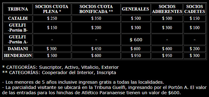 Las entradas se siguen vendiendo en Redpagos con los siguientes precios.