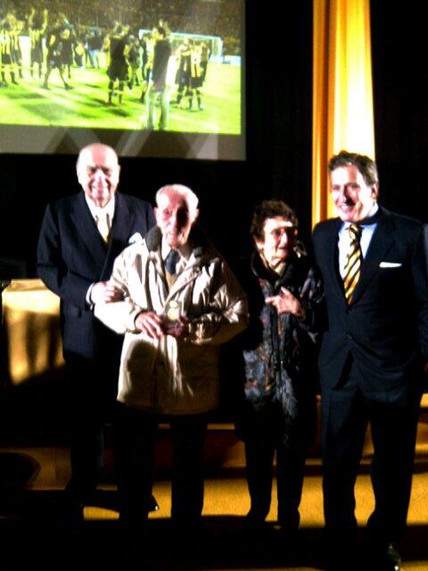 Más tarde, la cita fue en el Palacio Peñarol: allí, los homenajeados fueron los socios más veteranos del club, con 30 y 50 años de antigüedad de afiliación. El club les entregó medallas reconociendo así su fidelidad para con los colores, destacando el homenaje a Enrique Moreno, un hombre de 100 años que se llevó el aplauso de todos.