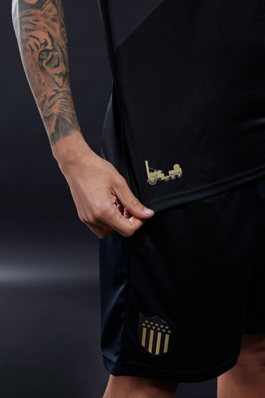 La alternativa negra cuenta con elementos ferroviarios, haciendo referencia a los orígenes de la institución, como lo es el ferrocarril. Además, posee dos franjas grises que se cruzan formando una "X" por encima del pecho y el año de fundación del club estilizado como matrícula en la parte superior de atrás.