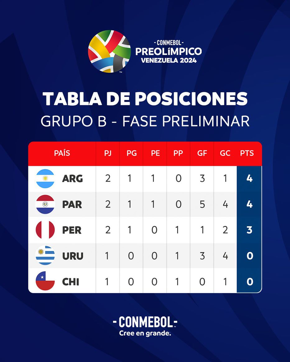 Argentina y Paraguay, que empataron 1-1 en la primera fecha, tienen 4 puntos cada uno, uno más que Perú, que debutó con un triunfo 1-0 sobre Chile y luego perdió con la Albiceleste. La Albirroja sacó resultados positivos ante las que, a priori por conformación de planteles, eran las dos selecciones más fuertes, por lo que le quedan las dos más “débiles” o con menos potencial.