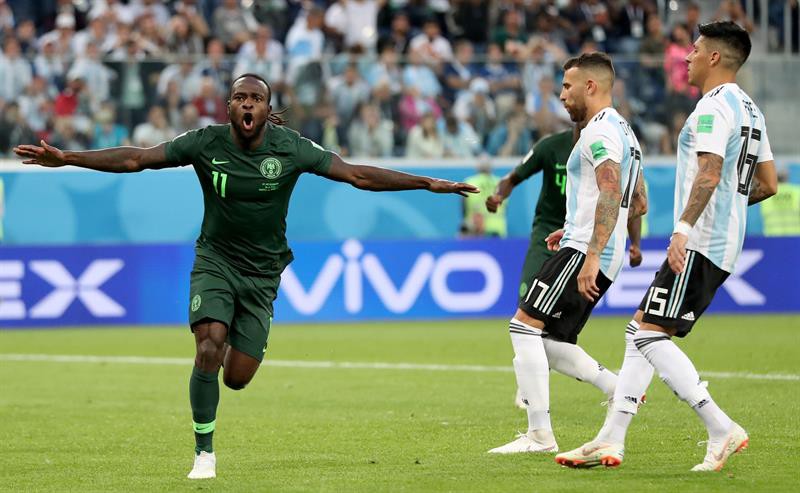 Fue Victor Moses quien se encargó de rematar la falta al palo izquierdo de Armani que recibió su primer gol en su debut mundialista. El tiro fue débil, no muy esquinado y rastrero, pero fue suficiente para batir al golero que se tiró al palo contrario. El nerviosismo empezó a ganar a la selección de Argentina que no encontraba el camino al gol de la victoria. El Pipa Higuaín tuvo la suya cuando faltaban diez minutos, pero la tiró desviada, de zurda.