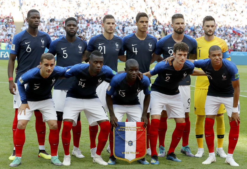 Francia: Hugo Lloris; Benjamin Pavard, Raphael Varane, Samuel Umtiti y Lucas Hernandez; Ngolo Kanté y Paul Pogba; Kylian Mbappé (89' Florian Thauvin), Antoine Griezmann (83' Nabil Fekir) y Blaise Matuidi (75' Corentin Tolisso); y Olivier Giroud. DT: Didier Deschamps