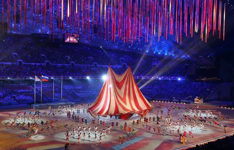 Una vez más, como en la apertura de los Juegos, fue la niña Liuba la protagonista y guía del espectáculo, y en compañía de los payasos Yuri y Valentina y otros famosos artistas circenses rusos, la pequeña hizo un recorrido por la cultura clásica rusa.