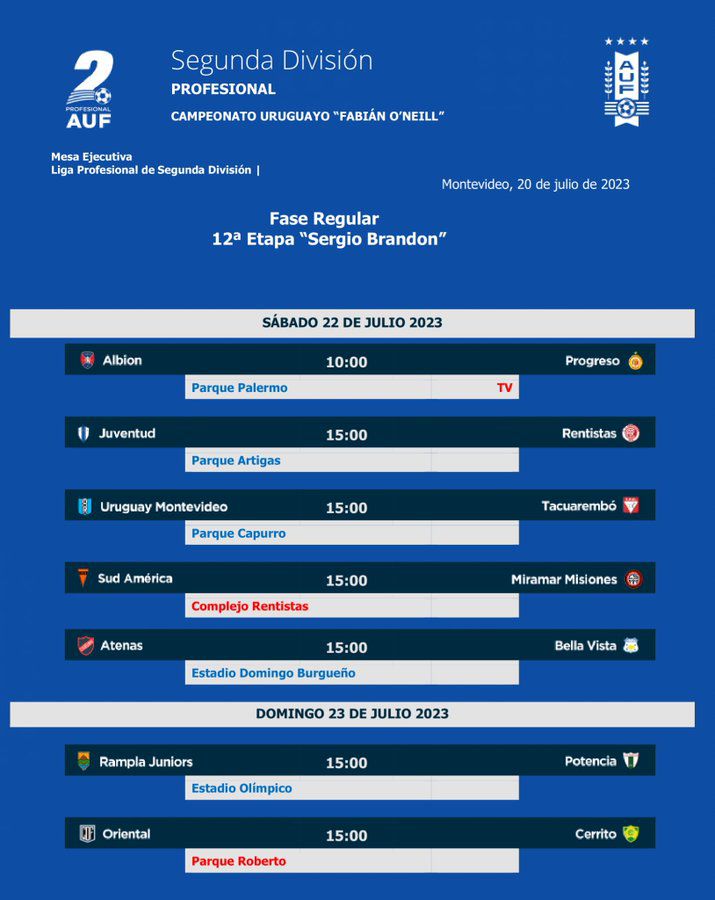 Este fin de semana comenzará la decimosegunda fecha de la fase regular de la Segunda División Profesional, que se disputará entre sábado 22 y domingo 23 de julio con un solo encuentro televisado, a diferencia de lo que sucedió a lo largo del campeonato, donde se transmitieron tres por etapa.