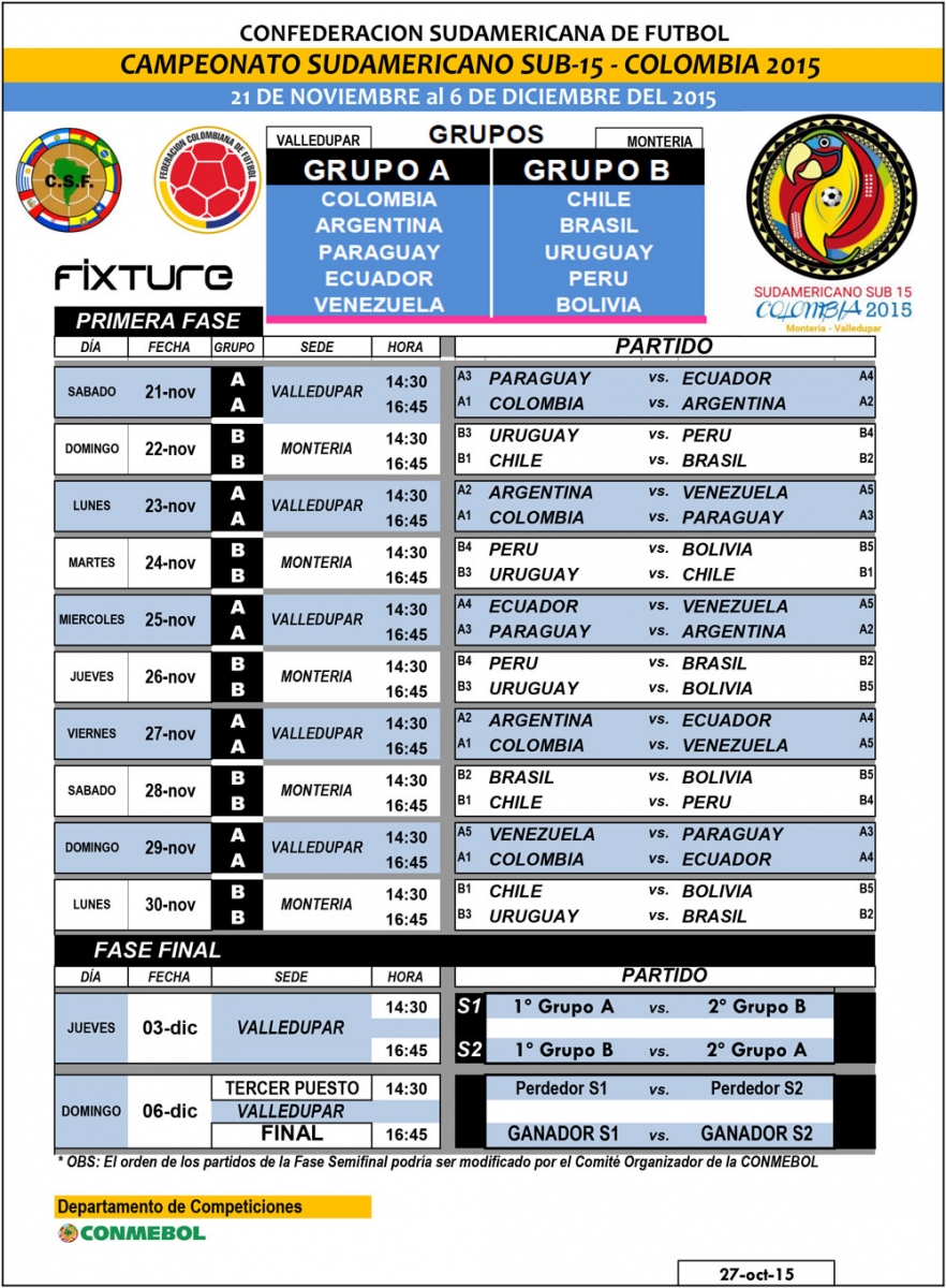 El torneo tendrá dos grupos. El A estará integrado por Colombia, Argentina, Paraguay, Ecuador y Venezuela. Mientras que en el B, estarán los celestes junto a Chile, Brasil, Perú y Bolivia.