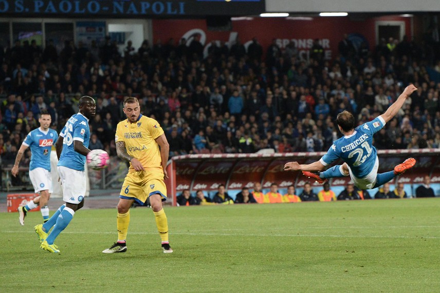 Napoli venció a Frosinone 4-0 con goles de Hamsik a los 44` y un triplete de Higuaín a los 52`, 62` y 71`, siendo el último un golazo de volea, tras controlar de pecho en el área.