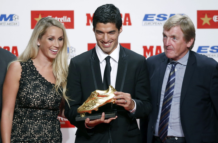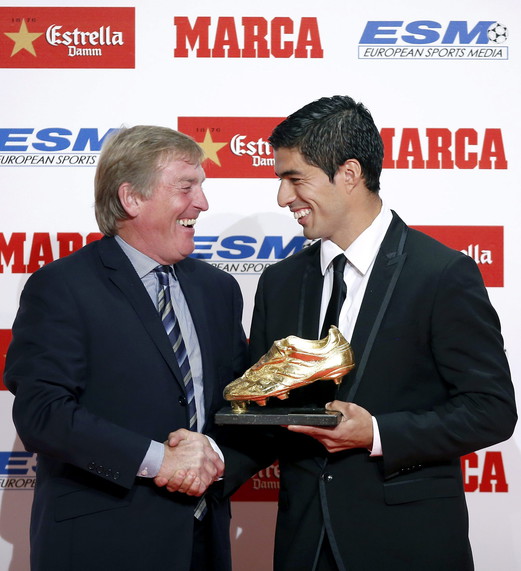 Por gratitud con el club inglés, Suárez solicitó que el trofeo con el que se distingue al máximo anotador de las ligas europeas le fuera entregado por su excompañero Steven Gerrard en Anfield Road, pero la ceremonia se realizó en la Antiga Fàbrica DAMM de Barcelona y el encargado de darle la Bota de Oro fue Kenny Dalglish, quien fuera su primer entrenador en el fútbol inglés.