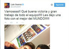 Con el mejor![]() Luis Suárez subió a su cuenta oficial de Twitter una foto junto con Leo Messi, la figura del partido de semifinales de Champions que Barcelona le ganó 3-0 al Bayern Munich con dos goles del argentino. “Les dejo una foto con el mejor del mundo”, escribió el salteño. Tras la gran victoria de la semifinal de ida de la UEFA Champions League que Barcelona le ganó 3-0 al Bayern Munich en el Camp Nou, Luis Suárez twitteó una foto acompañado de "Leo" Messi, la figura del partido al haber anotado dos goles a los 77' y 81' cuando todo parecía encaminarse a un cerrado 0-0. El delantero celeste aparece junto con el actual máximo goleador de la Champions con 77 goles y la leyenda que acompaña la imagen reza: "Les dejo una foto con el mejor del mundo", refiriéndose a Messi, determinante para ganar el partido de ida y al cual Guardiola lo había catalogado como "imparable cuando está inspirado". En el mismo mensaje, Suárez destaca con orgullo el triunfo al asegurar que fue una "buena victoria" gracias al "gran trabajo de todo el equipo". El delantero, que si bien no anotó goles en el partido de este miércoles, tuvo algunas ocasiones que tapó muy bien Neuer, además de que fue fundamental al iniciar la contra para el tercero. La semana que viene, Suárez y el Barcelona viajarán a Munich, donde encararán el partido de vuelta de semis ante el Bayern en el Estadio Allianz Arena el próximo martes a las 15:45 horas de Uruguay. La renta es más que buena y los bávaros tendrán que anotar tres o más goles para pasar. Los culés quieren llegar a Berlín y están a un paso. |
