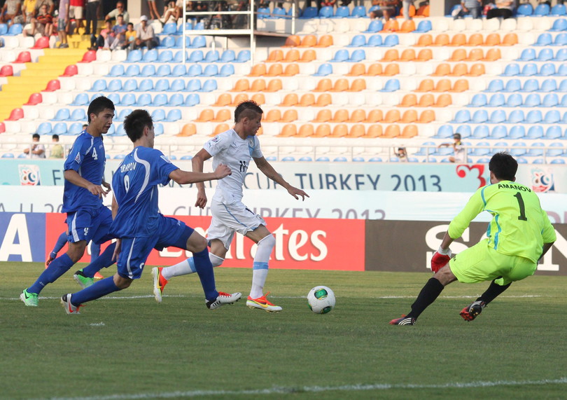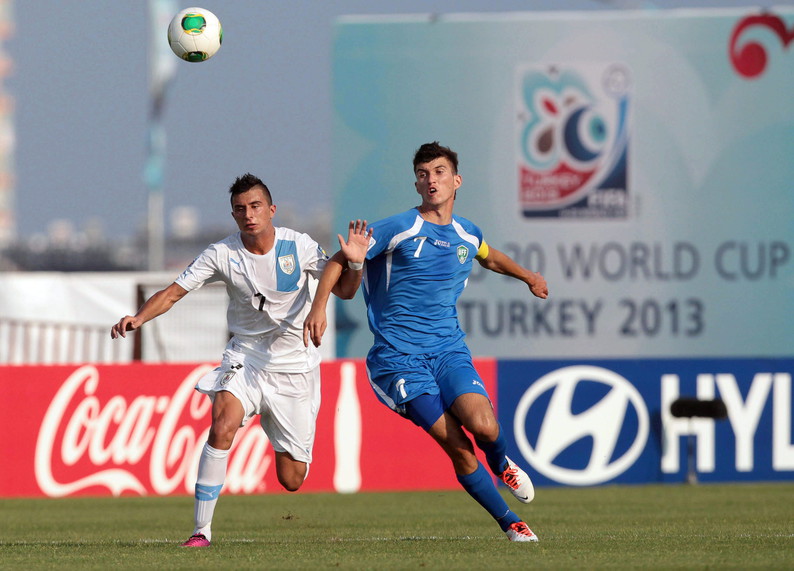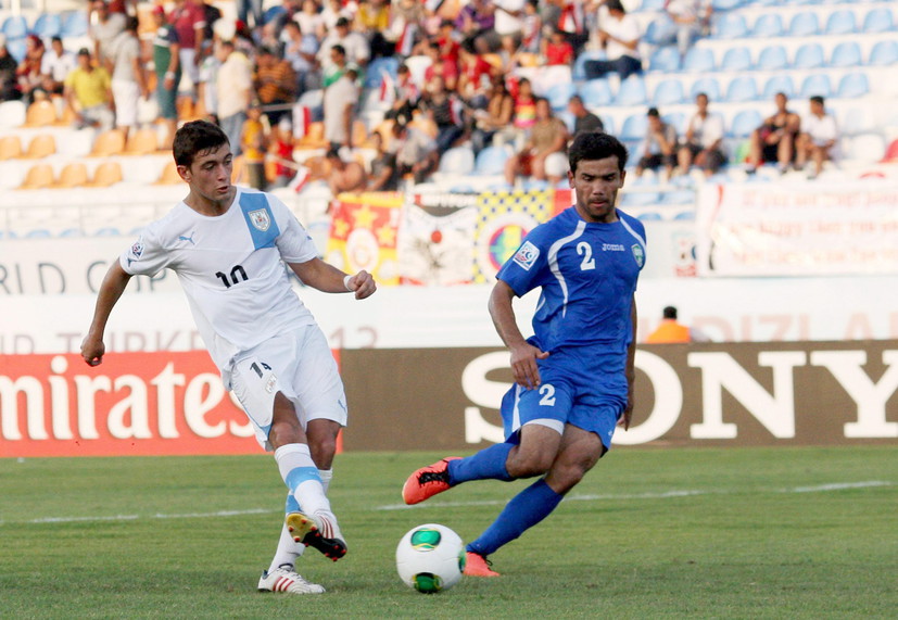 La Celeste mejoró a la hora de la distribución y generalmente tuvo más el balón que su rival. A partir de esa premisa controló el trámite el combinado charrúa, que avisó con un par de zurdazos cruzados del Diente López que se fueron desviados, y concretó a los 37 minutos. Cristóforo, de gran rendimiento en el mediocampo, robó la pelota y cedió para Federico Gino, quien batió la estirada del arquero uzbeco con un remate bajo y bien esquinado desde afuera del área.
