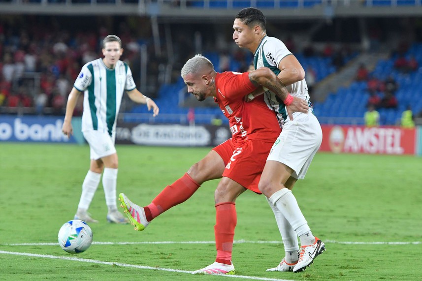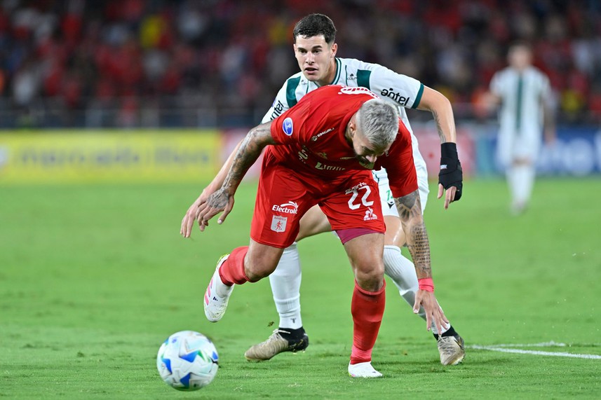 Duvan Vergara, tras dejar por el camino al golero, lo tuvo, pero Agustín Pereira la sacó en la línea. Un remate de Jan Lucumí y más tarde otro de Juan Fernando Quintero exigieron a Lautaro Amadé que se encargó de sostener el cero en su arco.