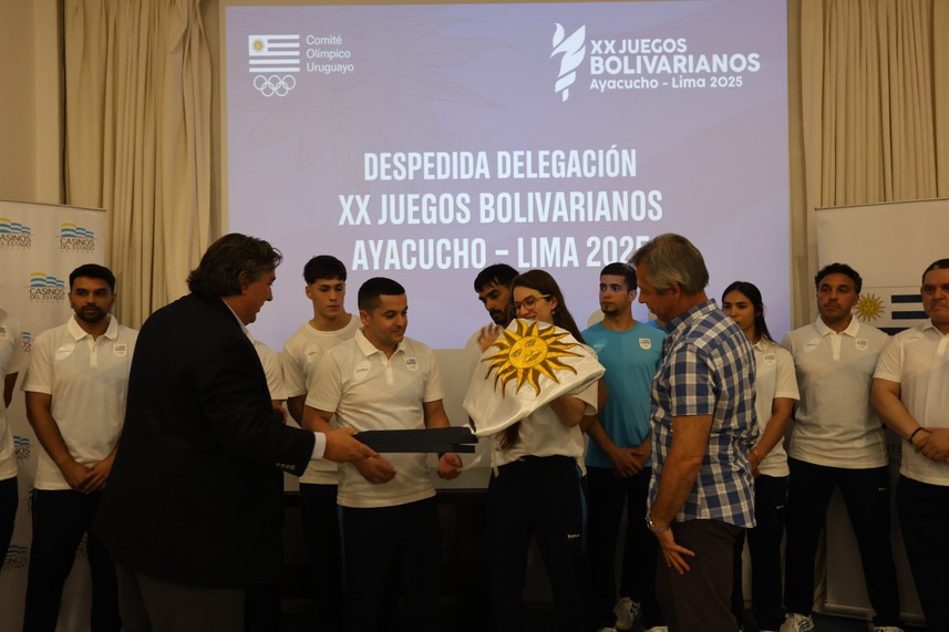 En las instalaciones del Comité Olímpico Uruguayo (COU) se realizó la despedida oficial y entrega del pabellón patrio a la delegación que nos representará, de forma inédita, en los XX Juegos Bolivarianos que se realizarán del sábado 22 de noviembre al 7 de diciembre en Lima y Ayacucho, Perú.