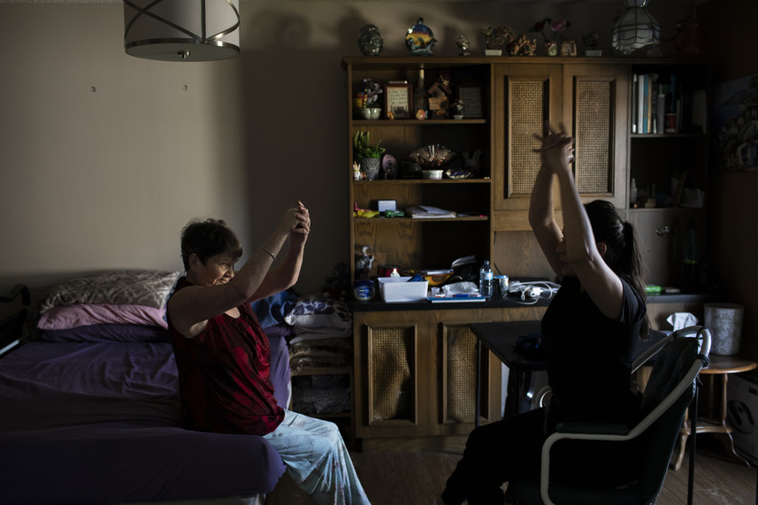 El pasado mayo, sentada en su silla de ruedas plegable en la cocina, levantó una pesa de medio kilo con la mano izquierda, una hazaña que habría sido imposible hace seis meses. Ahora puede desplazarse desde la cama hasta la cocina para prepararse un café. Puede subir las escaleras, tímidamente, con un aparato ortopédico. “Cuento las escaleras”, dijo. “Sé que hay 15”.