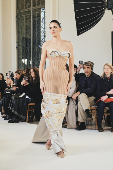 Roseberry dijo que, aunque había intentado romper el ciclo y sacar “una colección totalmente libre de corsés, lo que las clientas quieren no es eso en absoluto”. Lo que quieren, dijo, es cada vez más la silueta fabricada.