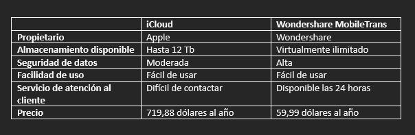 El iCloud es un sistema de gestión de copias de respaldo muy costoso, que, además, tiene un espacio limitado y que, por desgracia, solo funciona cuando estamos online. Por eso es más recomendable usar un software de copia de respaldo como Wondershare MobileTrans, que te permite guardar tus fotos y videos del iPhone en cualquier computadora local, disfrutando de un espacio virtualmente ilimitado por mucho menos dinero.