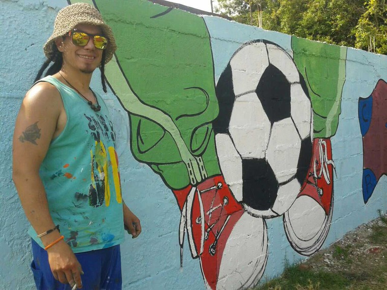 A la vuelta de esta obra que plasma la africanidad, está el fútbol, en la obra que diseñó Diego Falero, "El Neno", artista plástico y vecino de La Teja, que personalmente sacó fotos de los muros y los llevó al colectivo para impulsar la idea de pintar su propio barrio.