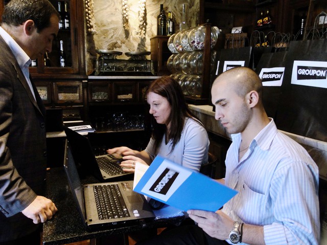 Todos los días Groupon ofrece durante 24 horas un servicio o producto de primera calidad con un descuento que va del 50 al 90%. Los usuarios compran la promoción con tarjeta de crédito y reciben un cupón que intercambian el día que asisten al establecimiento para recibir el servicio. A su vez, las empresas que publican sus servicios en Groupon tienen la oportunidad de atraer nuevos clientes por la exposición en la página web. www.groupon.com.uy