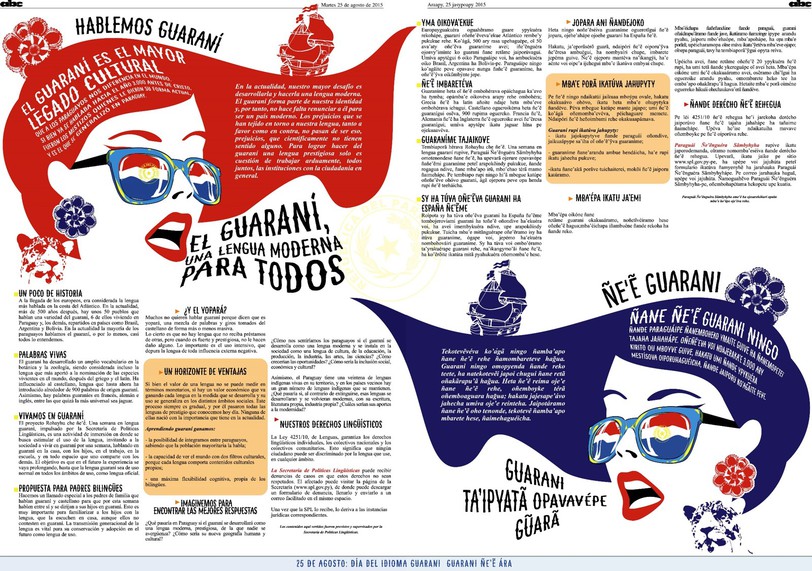 El 25 de agosto se celebra en Paraguay el día del idioma guaraní, por lo cual el diario de mayor circulación del país optó por publicar una réplica de su portada de esa fecha totalmente en guaraní.