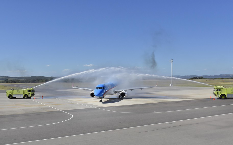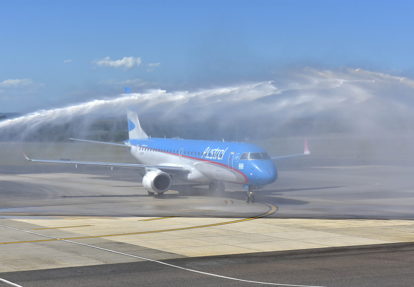 Con el tradicional bautismo de bienvenida, el Aeropuerto de Punta del Este recibió el primero de los vuelos directos de Aerolíneas Argentinas que llegan este verano desde Córdoba y Rosario. Son cinco frecuencias semanales que se suman a la tradicional Aeroparque-Punta del Este, reforzada como en cada temporada estival para atender a la mayor demanda.
