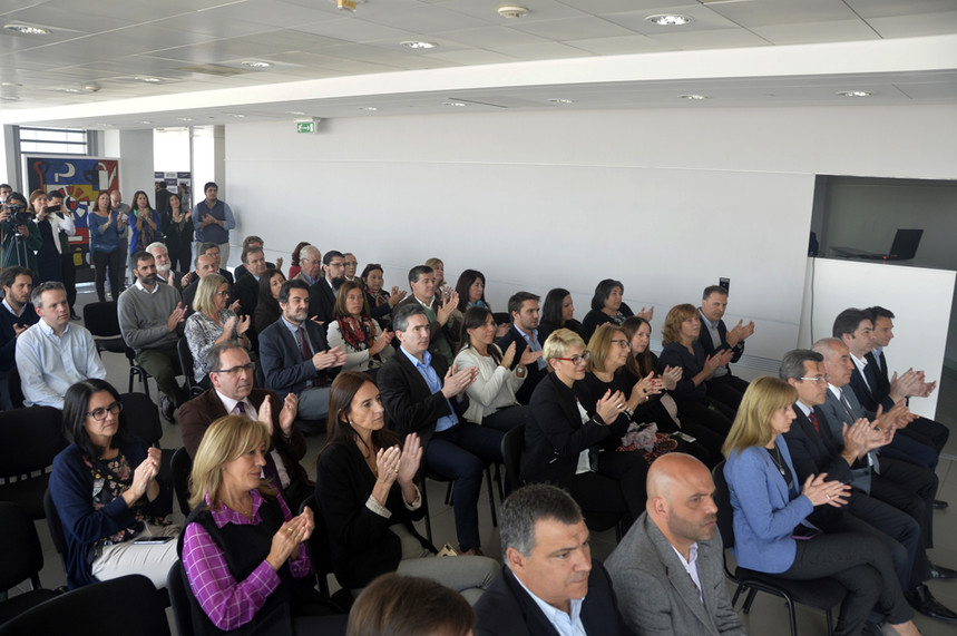 El Presidente de Antel, Ing. Andrés Tolosa; el Presidente del BSE, Mario Castro; el Vicepresidente, Cr. Guillermo Porras y el Gerente General de Brightstar, Lic. Gastón Guarrochena, fueron los encargados de explicar el alcance de la nueva prestación.