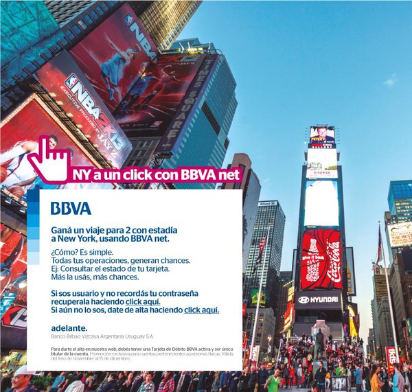 Durante todo el mes de noviembre y hasta el 15 de diciembre, quienes accedieron a BBVA net tanto para darse de Alta, realizar transacciones o realizar consultas participaban del sorteo que se realizó el 19 de diciembre de 2014.