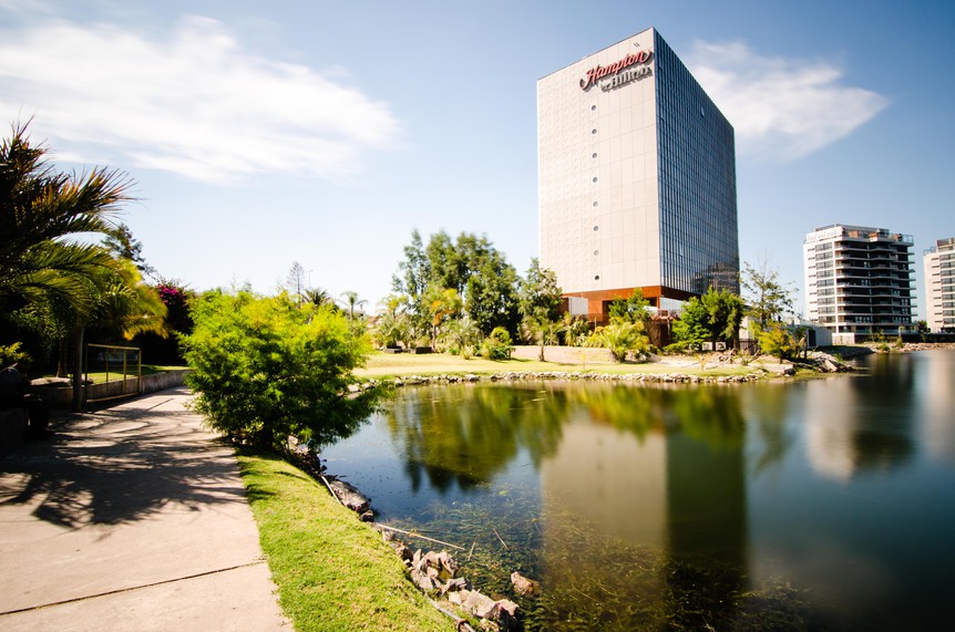 Destacado por su ubicación estratégica, el Hampton by Hilton Montevideo Carrasco es ideal para los viajes de negocios, a la vez que es un espacio perfecto para el descanso con un paisaje destacado por sus vistas al lago, el barrio de Carrasco y el Parque Roosevelt. "Nuestro hotel cuenta con fácil accesibilidad hacia los atractivos esteños y por sobre todo la cercanía al Aeropuerto de Carrasco. Las delegaciones deportivas son otro gran fuerte del hotel, ya que se encuentran en un entorno distendido y cerca de los principales centros deportivos de la ciudad. Las novias, nos eligen al momento de contratar su noche de boda por el diseño que cuenta el hotel donde los fotógrafos captan ese momento único. Dentro del rubro corporativo, las empresas eligen nuestras salas del piso nueve para realizar sus reuniones destacando la luminosidad natural de las mismas y vista hacia al lago Calcagno", explicó Pablo Scarpino Director Operativo del hotel.