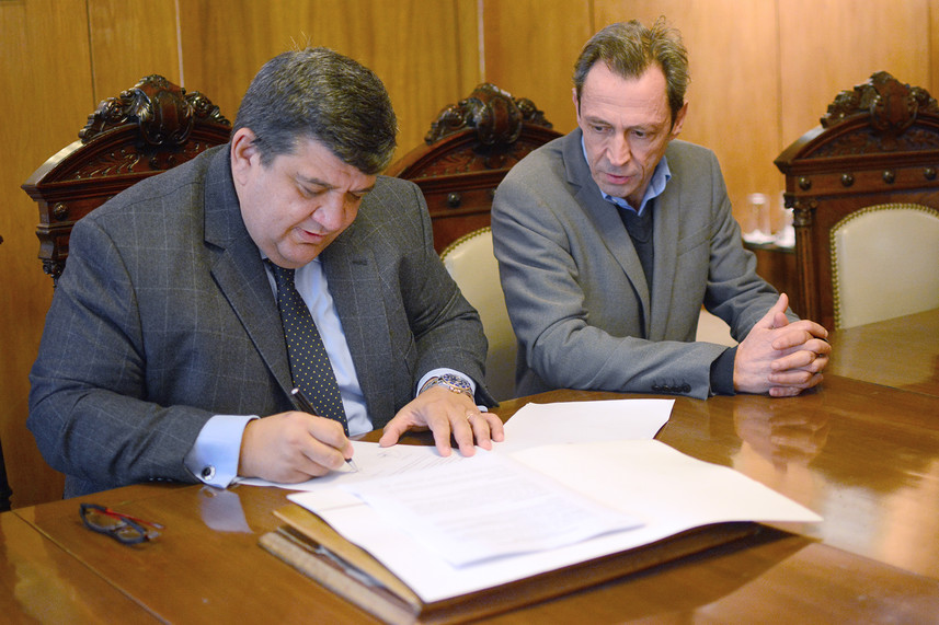 El Doctor Jorge Barrera, presidente del Club Atlético Peñarol, y el ingeniero Javier Serra, director de Montevideo COMM, suscribieron este viernes un acuerdo que permitirá a la institución mirasol disponer de un nuevo sistema informático de gestión de socios y prestaciones diversas, provisto por la empresa tecnológica.