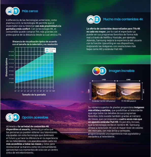 A continuación, Samsung presenta las cuatro razones para adquirir un televisor 4K: