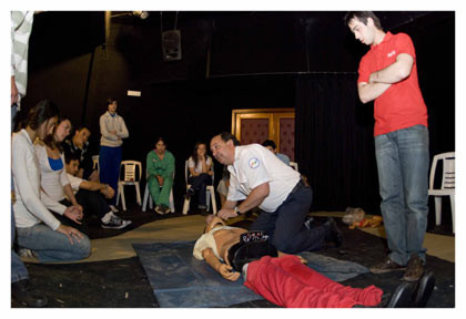 El cronograma implicó una introducción al curso, la emisión de dos películas con ejemplos sobre primeros auxilios y su posterior análisis grupal y, finalmente, la práctica de RCP.