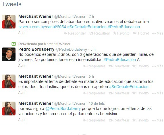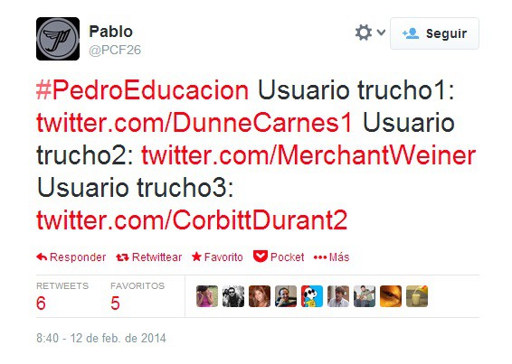 Incluso, la cuenta del Frente Líber Seregni, del Frente Amplio, recogió la acusación: "Bordaberry está usando este hashtag #PedroEducación pero quienes allí comentan tienen menos de 50 seguidores y sólo 4 o 5 tuits sobre Pedro".