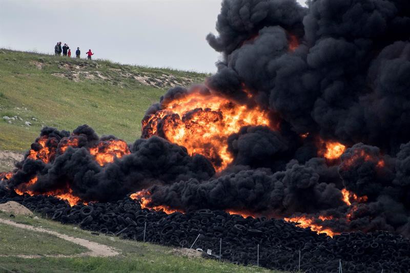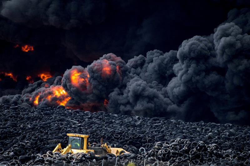 El cementerio de neumáticos, declarado ilegal desde el año 2009 y que acumula cinco millones de llantas usadas, está ubicado a 36 kilómetros al sur de Madrid y se expande a lo largo de once hectáreas a menos de medio kilómetro de una zona urbana.