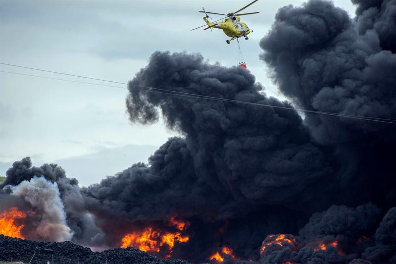 Los técnicos analizan si el humo puede causar problemas al tráfico ferroviario o aéreo, aunque no se plantea por ahora el desalojo de los centro urbanos próximos.