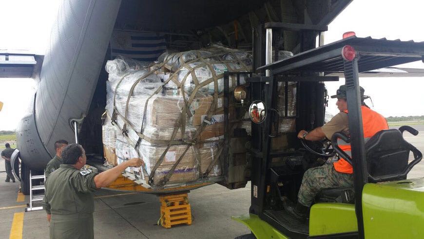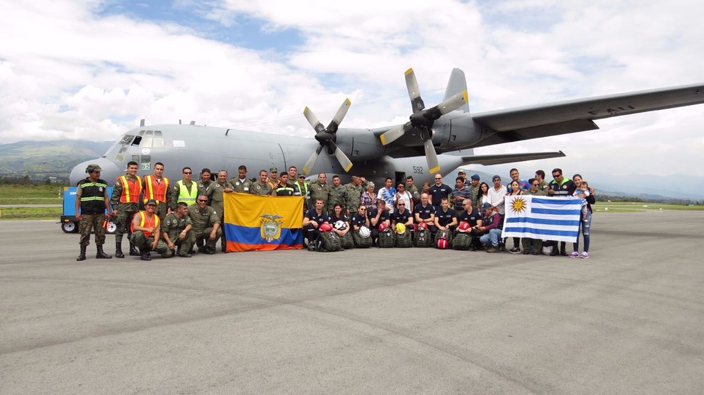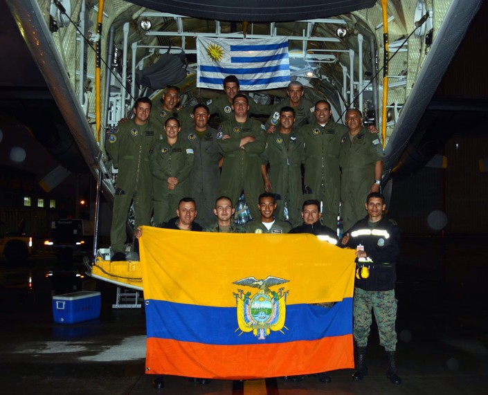 Desde el pasado 21 de abril se encuentra en Ecuador una aeronave C-130 Hércules (FAU 592), con tripulación conformada por diez integrantes, pertenecientes al Escuadrón Aéreo N° 3 (Transporte).