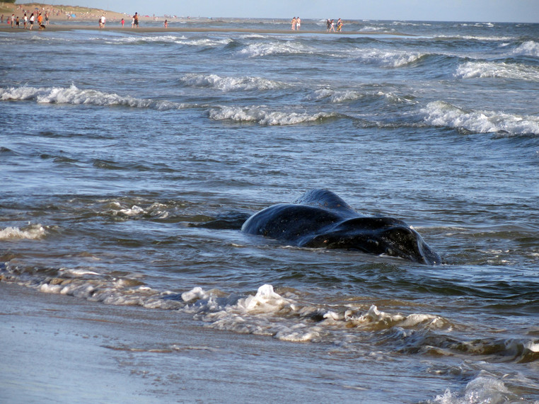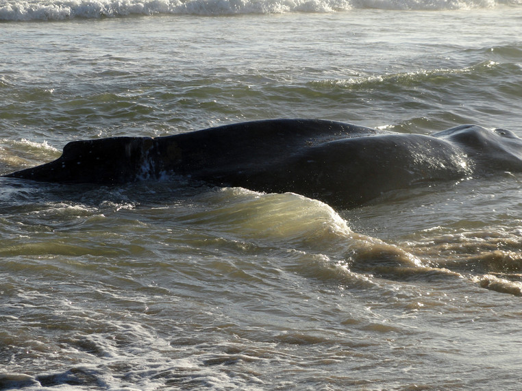 La ballena apareció muy lastimada, con heridas recientes: "Logramos cincharla adecuadamente con las mangueras de bomberos y pudimos meterla al mar, pero enseguida intentó salir y la arreamos casi cinco cuadras por el mar, ella nadando y nosotros insistiendo en que no vuelva, hasta que quedó encallada en una banco de arena, demostrando que no quería más; no tenía energía, no quería seguir mar adentro. Ahora está agonizando y no hay nada que se pueda hacer", afirmó.