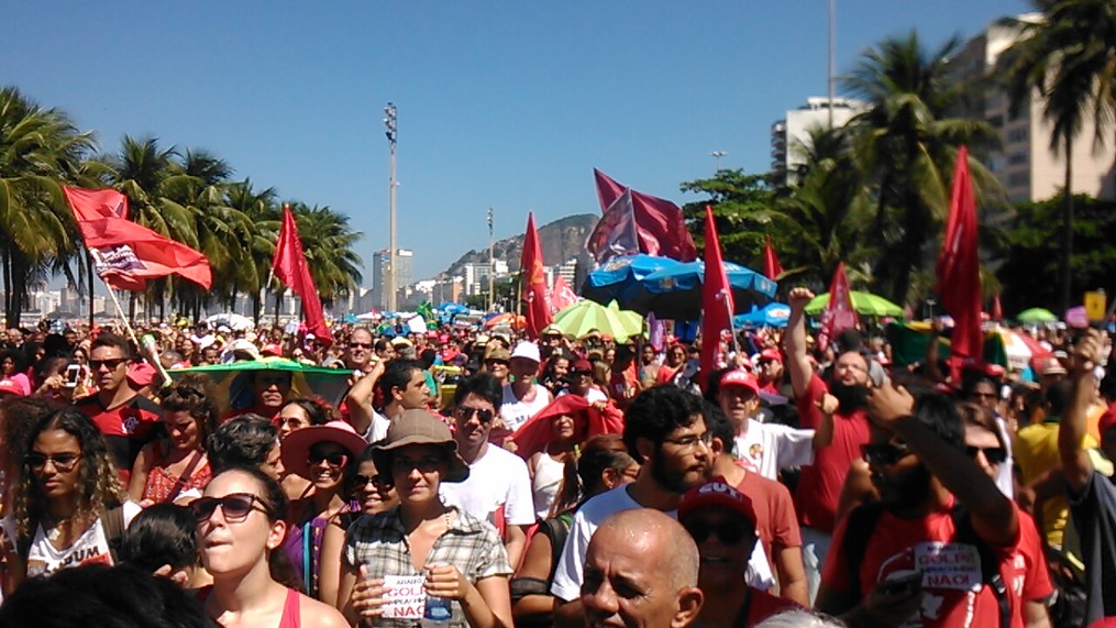 En el lado izquierdo, mirando hacia el Congreso, se ubicaron los movimientos sociales y sindicatos favorables a Rousseff, mientras que el derecho ha sido ocupado por quienes promueven la destitución.