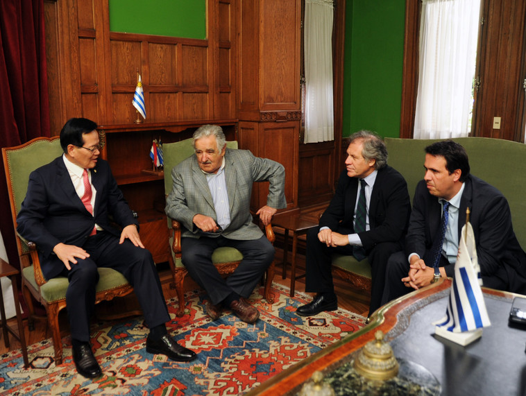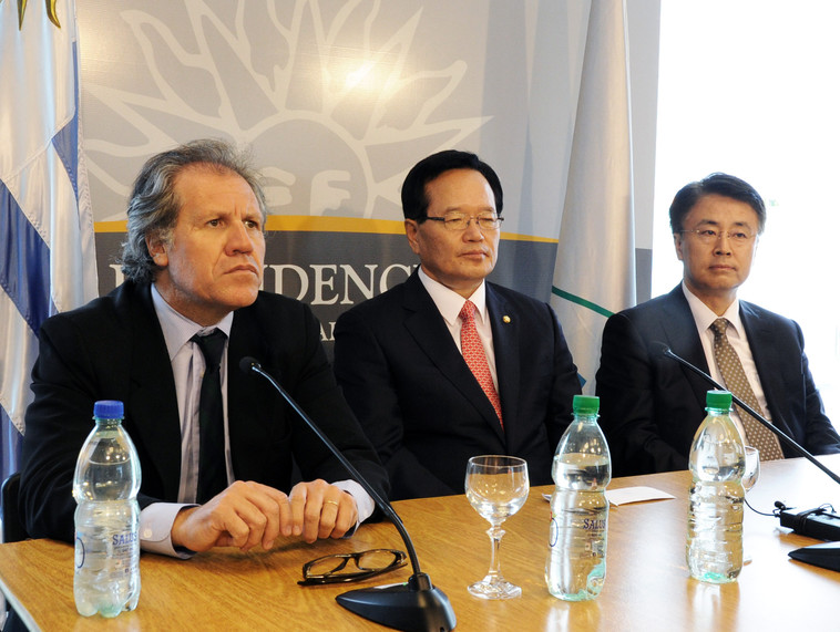 "Uruguay aprecia las posibilidades de asociación estratégica con Corea, teniendo en cuenta las similitudes entre los dos países, su capacidad de inversión, y su interés en la participación en infraestructura, y para asociarse con empresas de la región", dijo el canciller Luis Almagro, en una rueda de prensa tras el encuentro entre Mujica y Ui Hwa Chung.