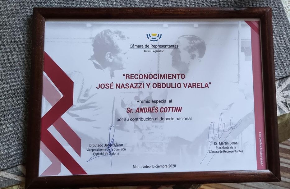 Por su parte, Cottini recibió una mención especial por su desempeño, el que fue destacado como “un gran profesional de la comunicación del deporte uruguayo”, por parte del diputado colorado por Salto, Omar Estévez.