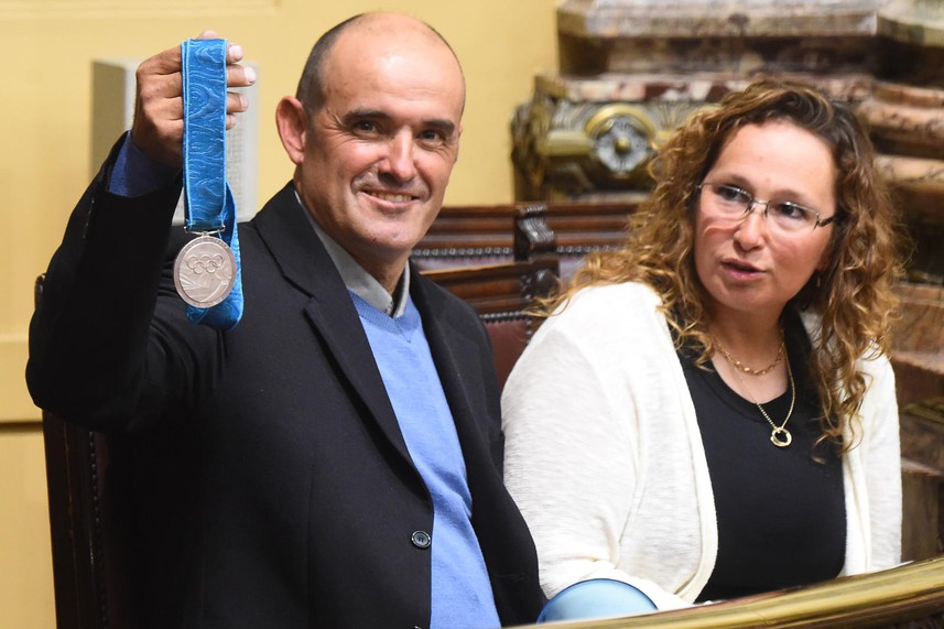 Wynants estuvo presente en el homenaje junto con su familia y el intendente de Paysandú Nicolás Olivera. Allí llevó su medalla olímpica y se emocionó con los halagos y un video conmemorativo que se hizo de su victoria y su vuelta a Uruguay.